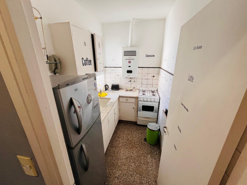 Cocina separada, equipada con microondas, calefón y cocina a gas, heladera con freezer y vajilla.