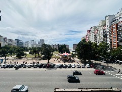 AMBIENTE AMPLIO CON HALL DE ENTRADA , AMBIENTE EN L A LA CALLE CON BALCÓN SALIENTE , COCINA SEPARADA A LA CALLE, BAÑO COMPLETO EN ESTADO ORIGINAL . TOTALMENTE EQUIPADO PARA 3 PERSONAS. CON CAMA DE DOS PLAZAS Y SOFA CAMA. TV. CON SISTEMA DE DIRECTV . RECOMENDABLE UBICACIÓN . FRENTE A PLAZA COLON Y DE PLAYAS CÉNTRICAS . EXCELENTE VISTA A PLAZA COLON Y AL MAR