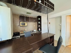 - Moderno living-comedor integrado a una cocina con barra desayunadora, totalmente equipada microondas, pava eléctrica, cocina.