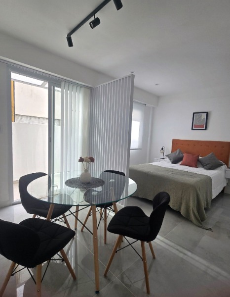 El ambiente principal, de generosas dimensiones (6 x 3 m), cuenta con pisos cerámicos, placard. Cocina separada, luminosa y ventilada, revestida en cerámicos y con ventana a la calle. Baño completo con ducha, también en buen estado.