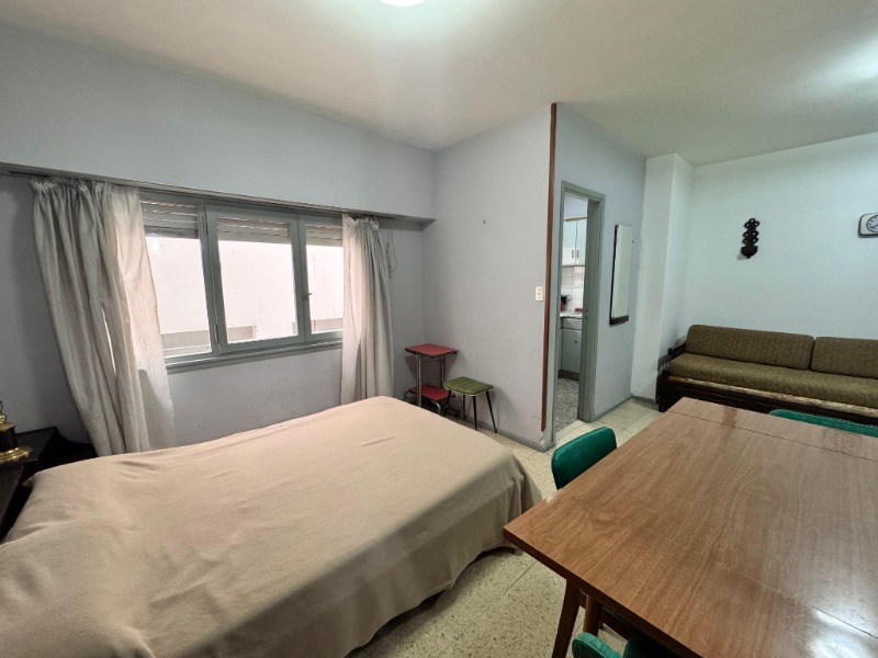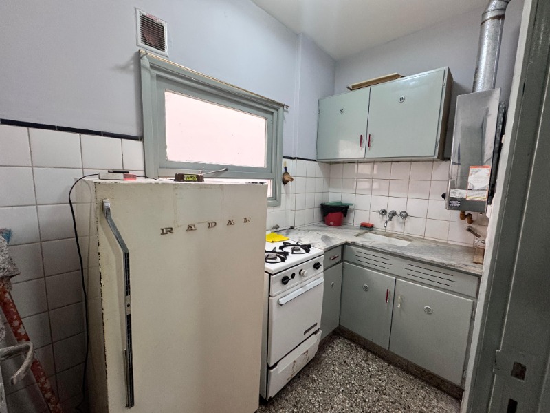 El ambiente principal, de generosas dimensiones (6 x 3 m), cuenta con pisos cerámicos, placard. Cocina separada, luminosa y ventilada, revestida en cerámicos y con ventana a la calle. Baño completo con ducha, también en buen estado.