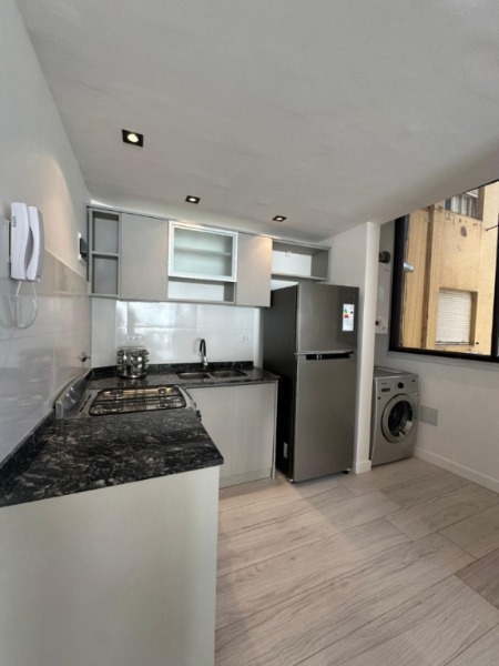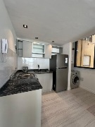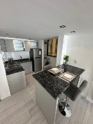 Cocina con barra (3.05 x 1.70- Revestida en porcelanato, barra con banquetas. Amoblamiento de cocina a medida. Equipada con Heladera Samsung, Lavarropas Samsung, Cocina Orbis y Caldera dual Asua.