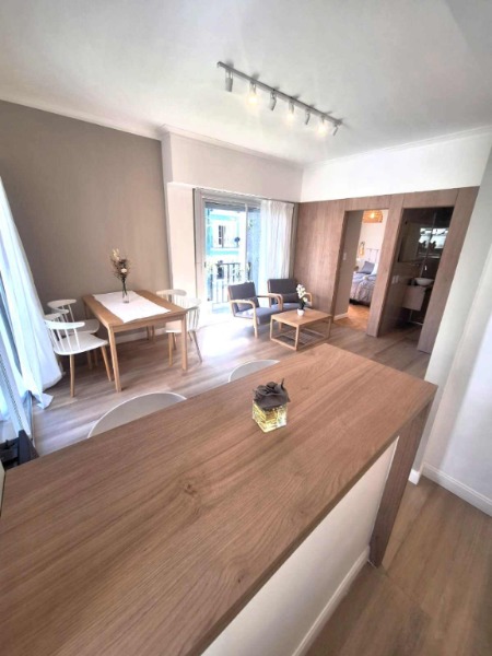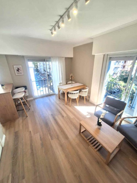 Departamento de tres ambientes en buen estado. Cuenta con living comedor amplio y luminoso, con pisos renovados, ventanal y balcón francés a la calle, con vista a Av. Colón.