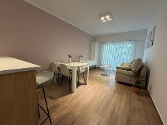 Ambiente contrafrente abierto con piso en ceramico- Balcon saliente- Cocina con barra desayunadora- Revestida en ceramicos- Heladera, termotanque electrico, cocina, lavarropas y microhondas a estrenar- Baño revestido en ceramicos- Con pediluvio y mampara- Placard- Pintado a nuevo- Amoblado- Calefactor- Luces y apliques- Agua, desagues y gas hecho a nuevo- Sup: 28 mts2