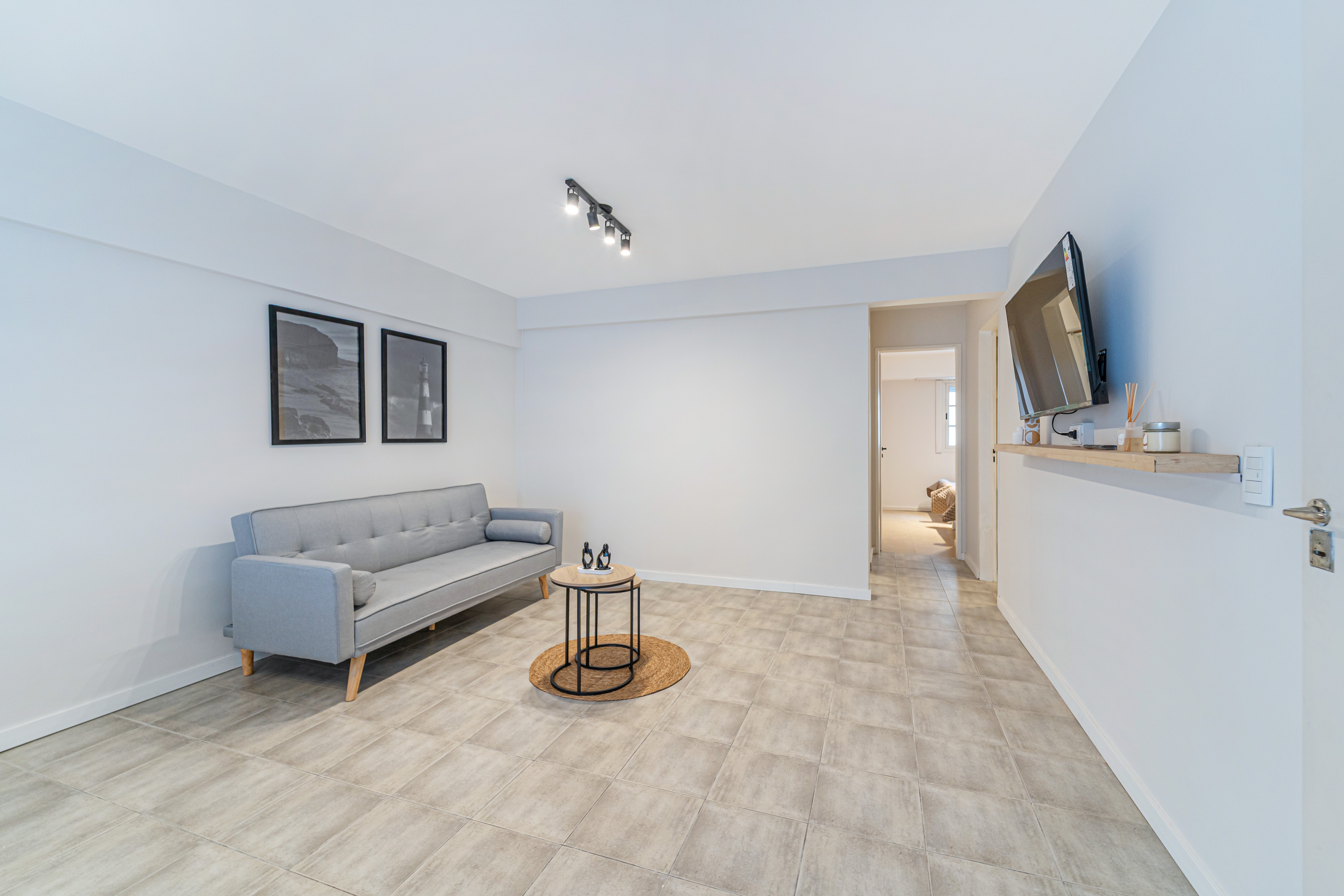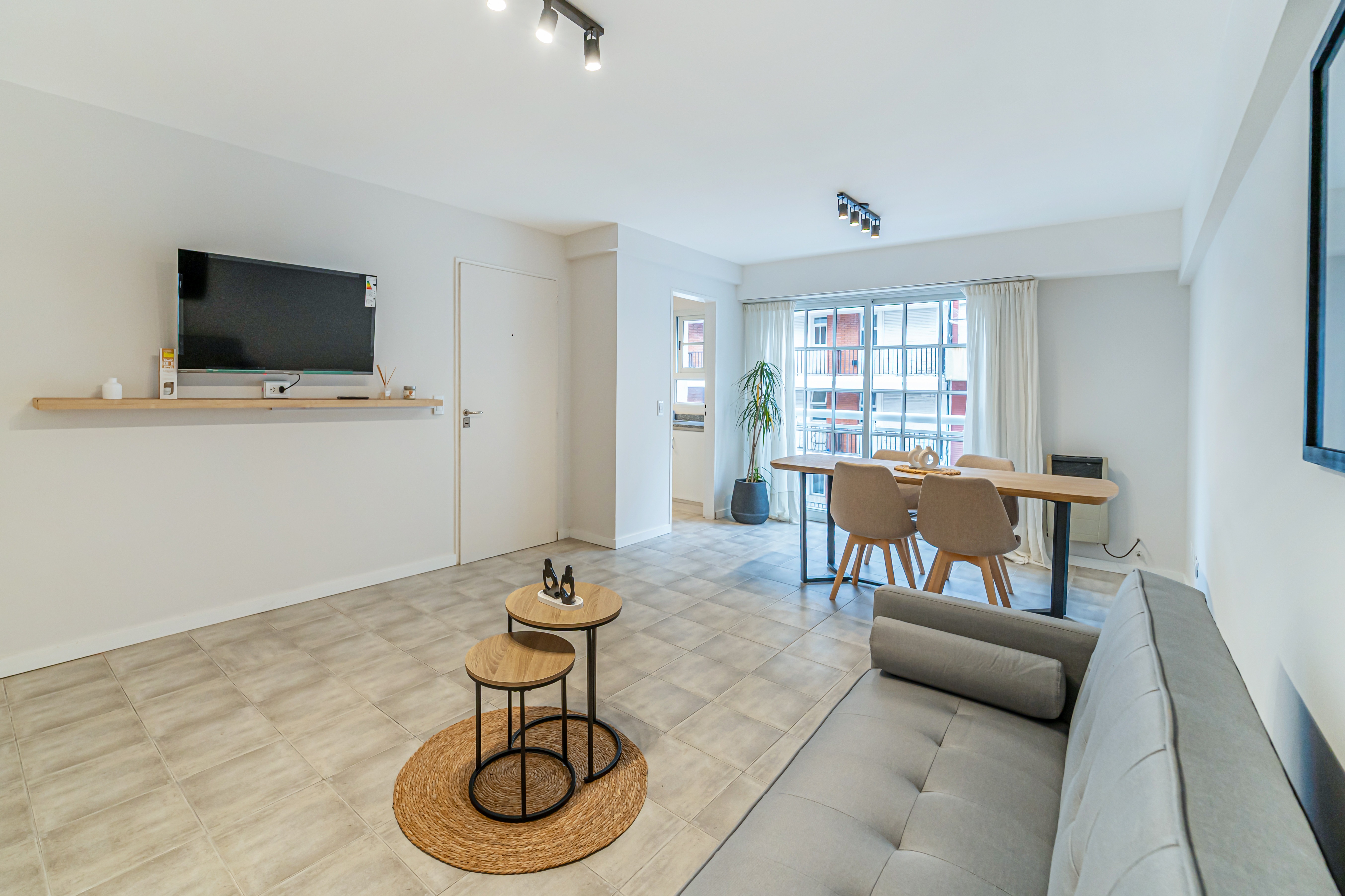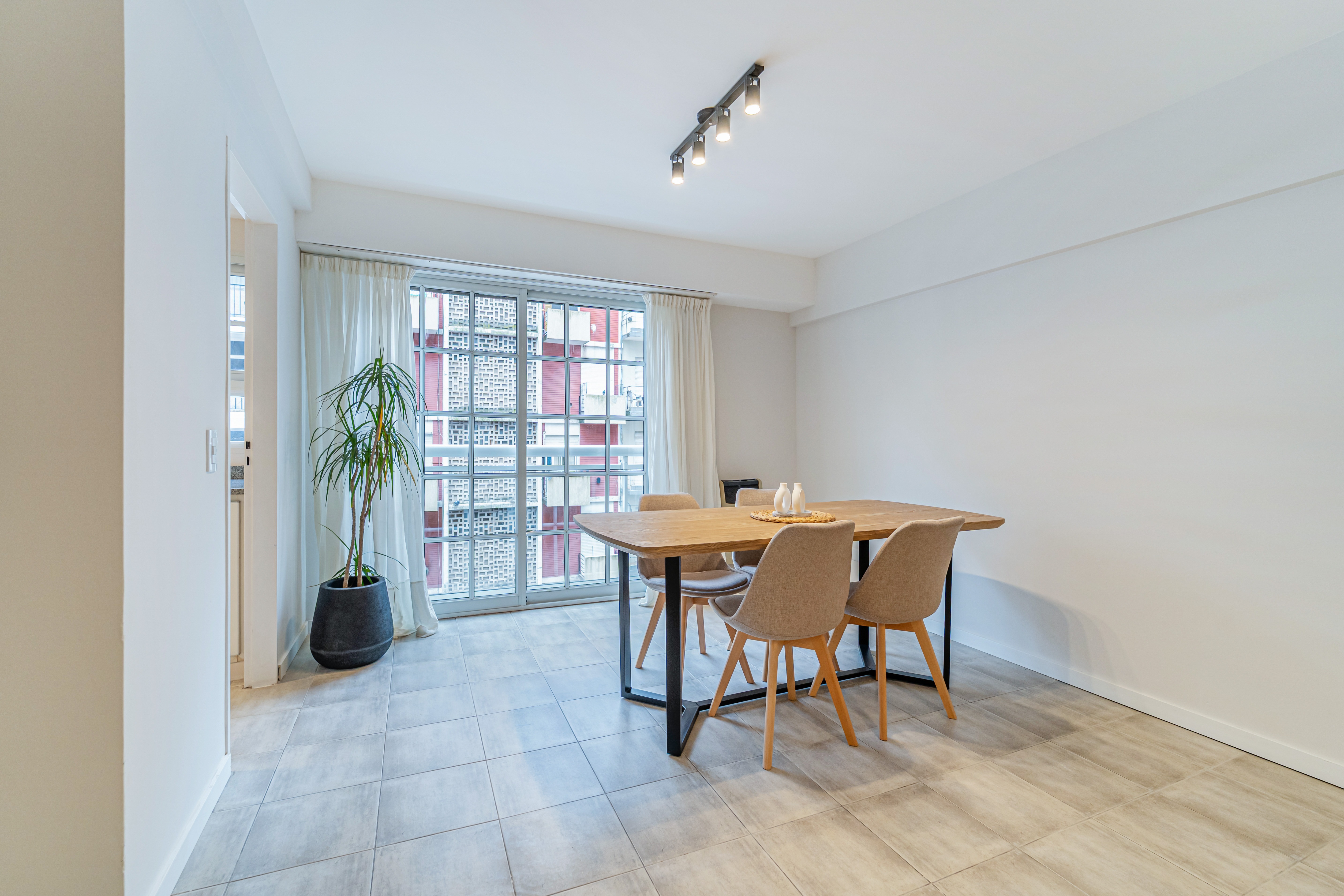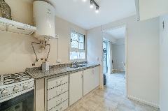 Depto de 1 ambiente desplazado con ventana a la calle- Se encuentra totalmente reciclado a nuevo- Cañeria e instalacion electrica- Cocicna separada con horno y anafe electrico- Muebles cocina a medida- Sector living con sillon de 1 plaza y mesa con sillas- Sector dormitorio con placard y sommier 2 plaza con respaldo-