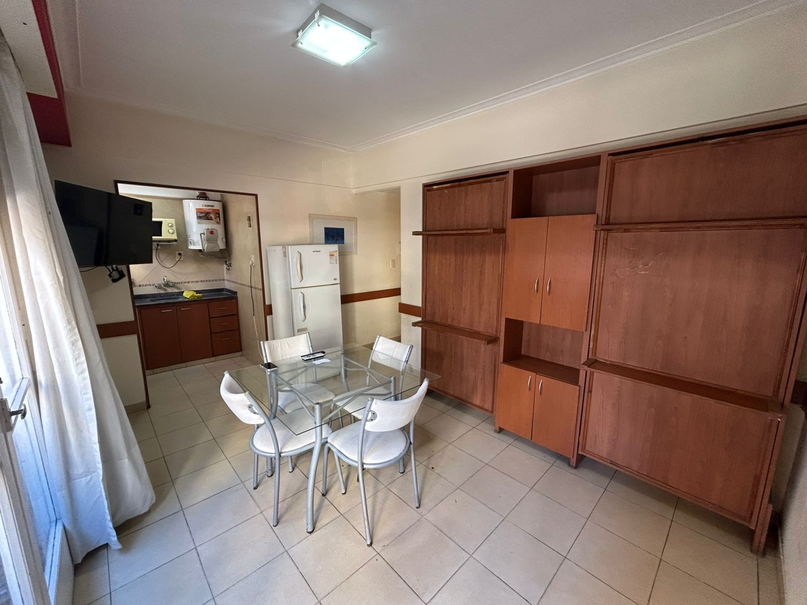 AMBIENTE AMPLIO DIVISIBLE CON VENTANAL A LA CALLE, SECTOR LIVING CON MESA Y CAMA TIPO MARINERA, SECTOR DORMITORIO EQUIPADO CON SOMMIER DE DOS PLAZAS ,COCINA SEPARADA CON BUENA VENTILACION A LA CALLE REVESTIDA EN AZULEJOS SAN LORENZO,BAÑO COMPLETO REVESTIDO EN AZULEJOS SAN LORENZO - DEPTO EN ESTADO ORIGINAL - UBICADO EN PLENO CENTRO DE LA CIUDAD A TRES CUADRAS DE PEATONAL SAN MARTIN Y 4 DEL CASINO Y PLAYAS CENTRICAS. Departamento con artefactos eléctricos TERMO - ANAFE DOS HONRALLAS - MICROONDAS...