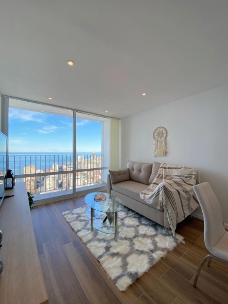 Amplio living con balcón saliente y vista panorámica de la ciudad y vista lateral al mar Cocina de generosos dimensiones totalmente equipada con comedor integrado Máster suite con vestidor, escritorio y baño privado Segundo dormitorio con placard y muy luminoso Baño completo El departamento se encuentra totalmente reciclado a nuevo y cuenta con planos de todo el trabajo Sistema de calefacción por radiadores Se entrega totalmente amoblado y decorado