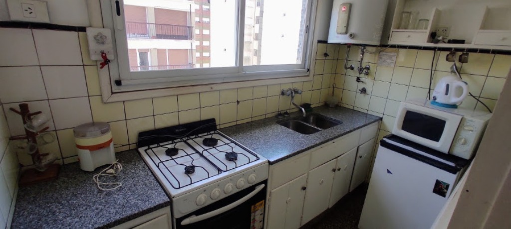 TAMBIÉN AL FRENTE, CON VENTANA. EQUIPADA CON HELADERA, MICROONDAS Y TERMOTANQUE ELÉCTRICO.